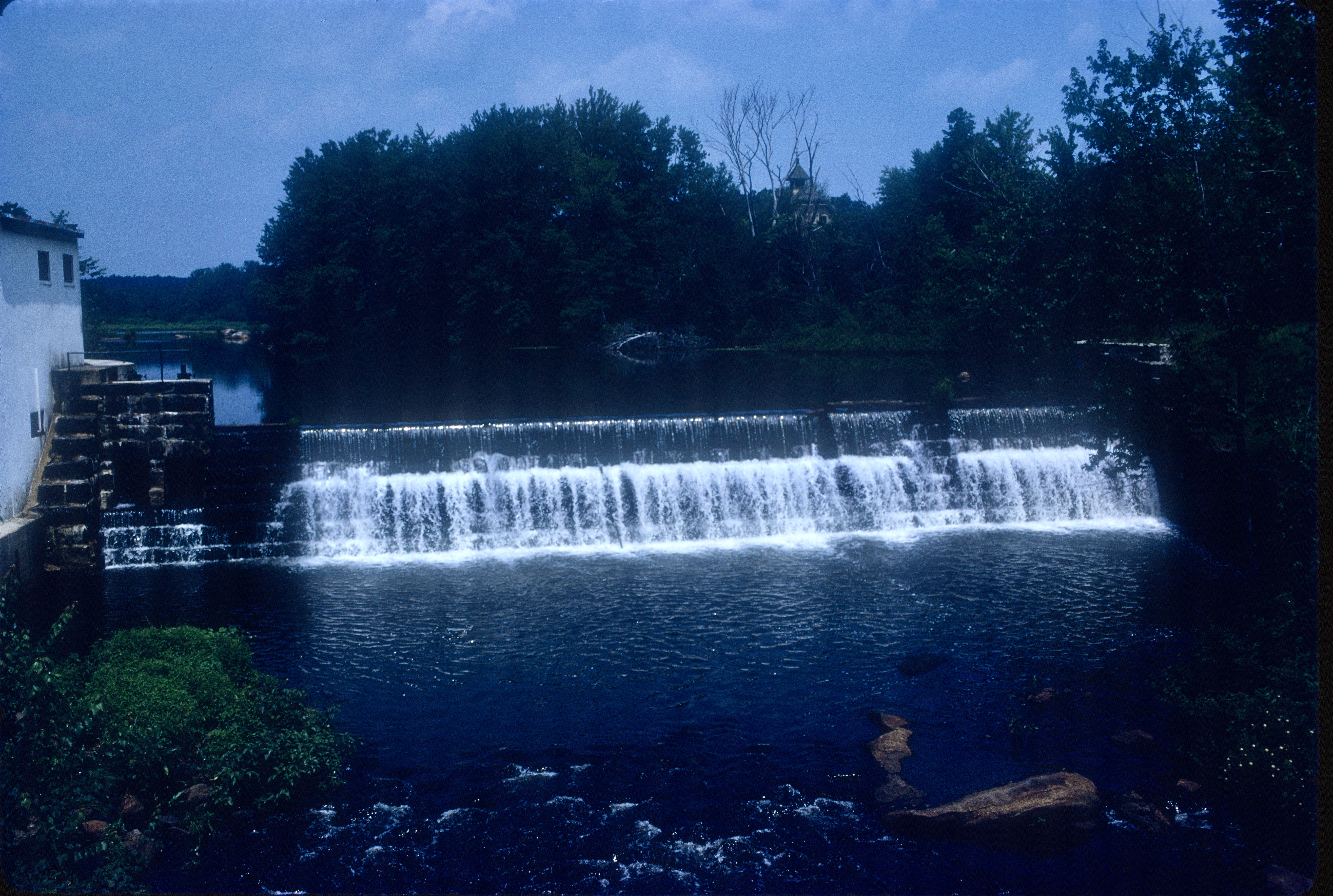 The Mumford River Dam and Mill (built c. 1910) in Uxbridge, Massachusetts.