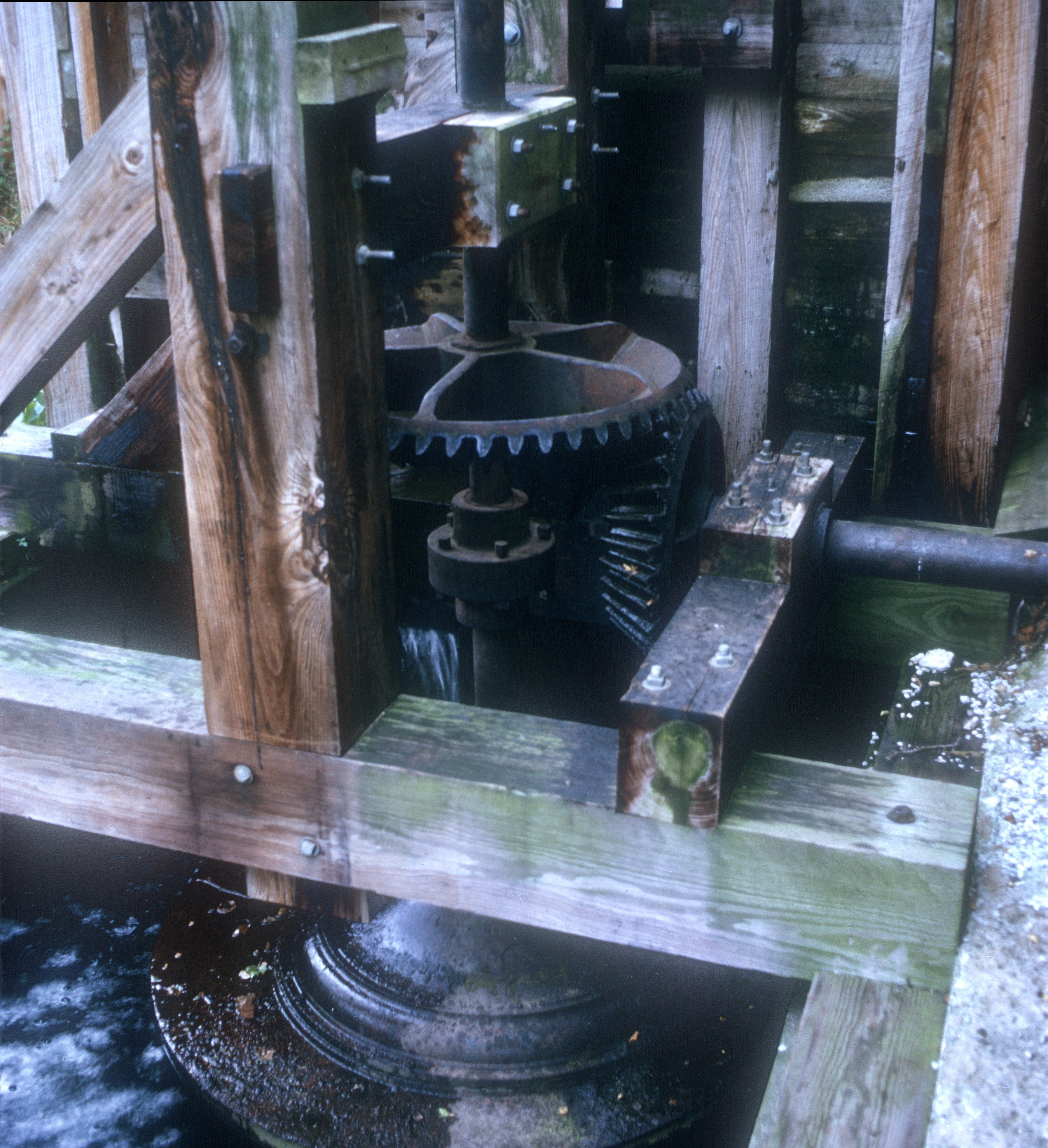 The grist mill turbine and gearing of the Batsto, New Jersey grist mill.