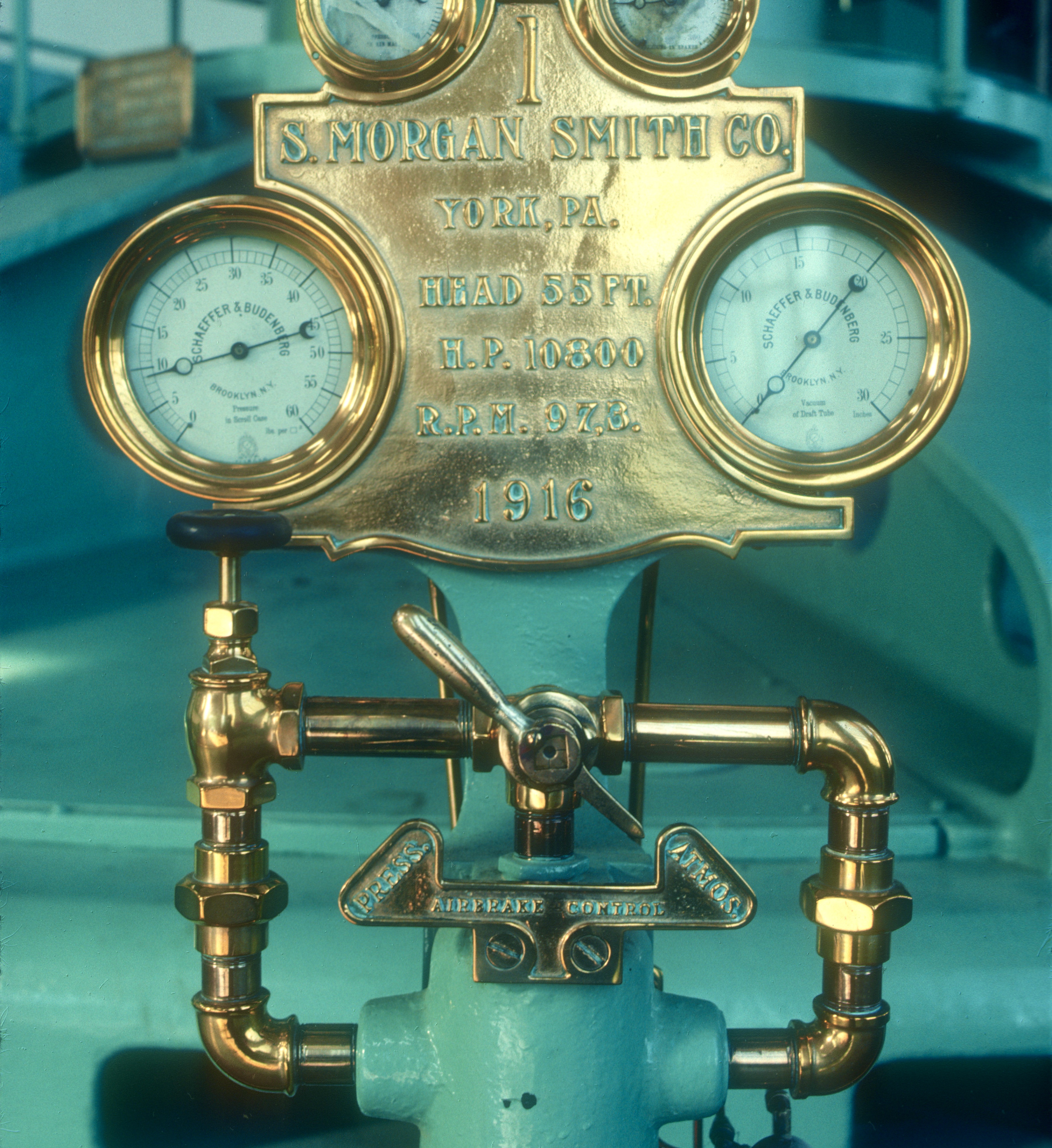 The gauge panel no. 1 at the Fishing Creek Hydrostation on the Catawba River in Great Falls, South Carolina, built c. 1916.