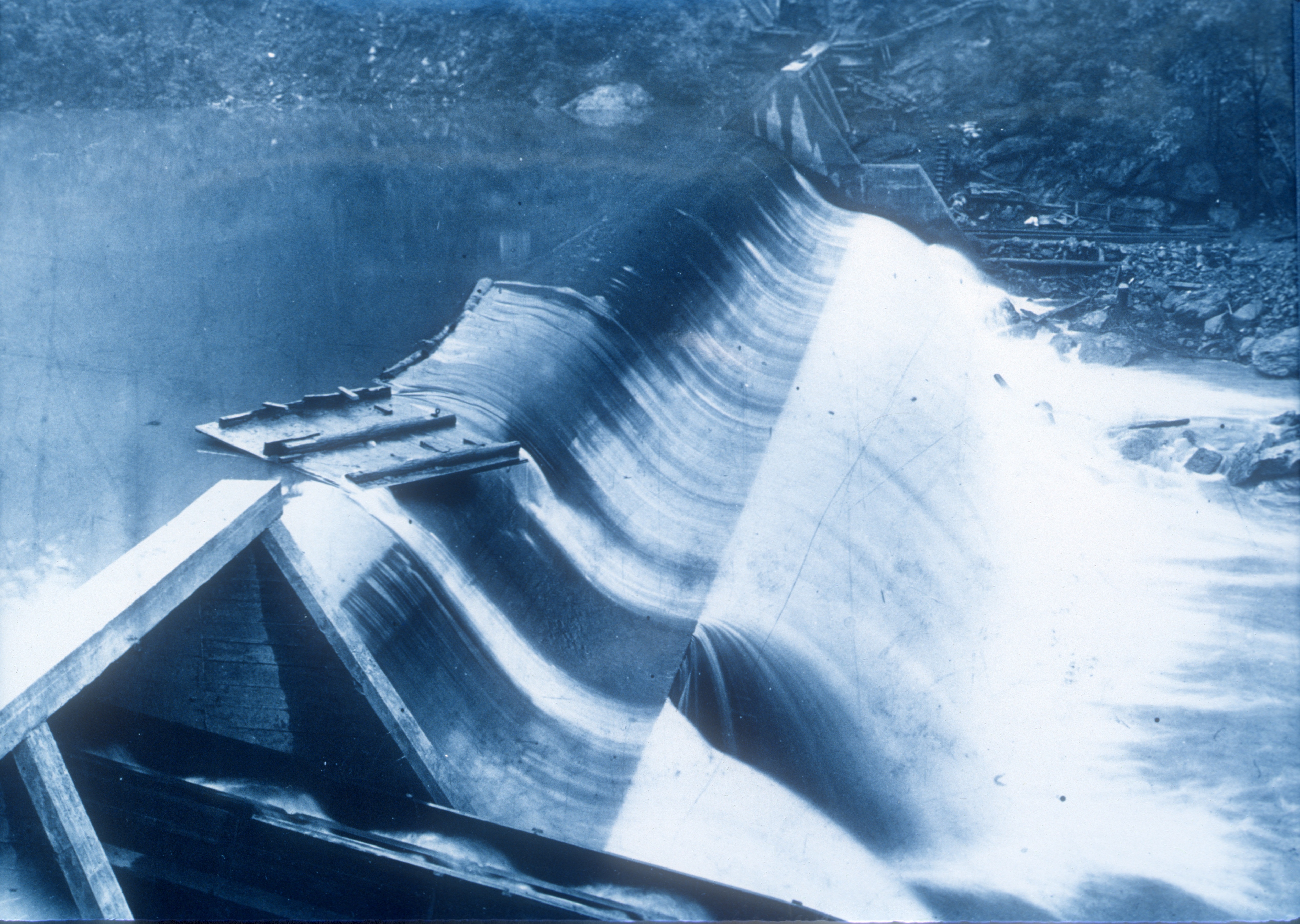 This is a photo of Bloede's Dam on the Patapsco River in Catonsville/Ilchester, Maryland. This underwater generating station was built in 1906 and was removed in 2019.